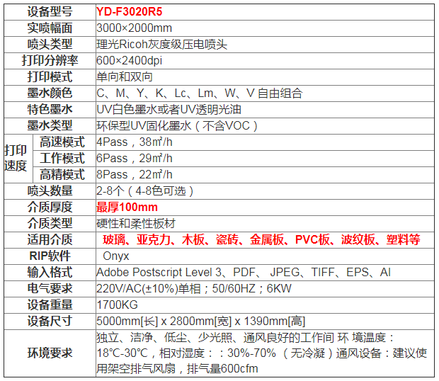 實(shí)噴幅面 3000×2000mm